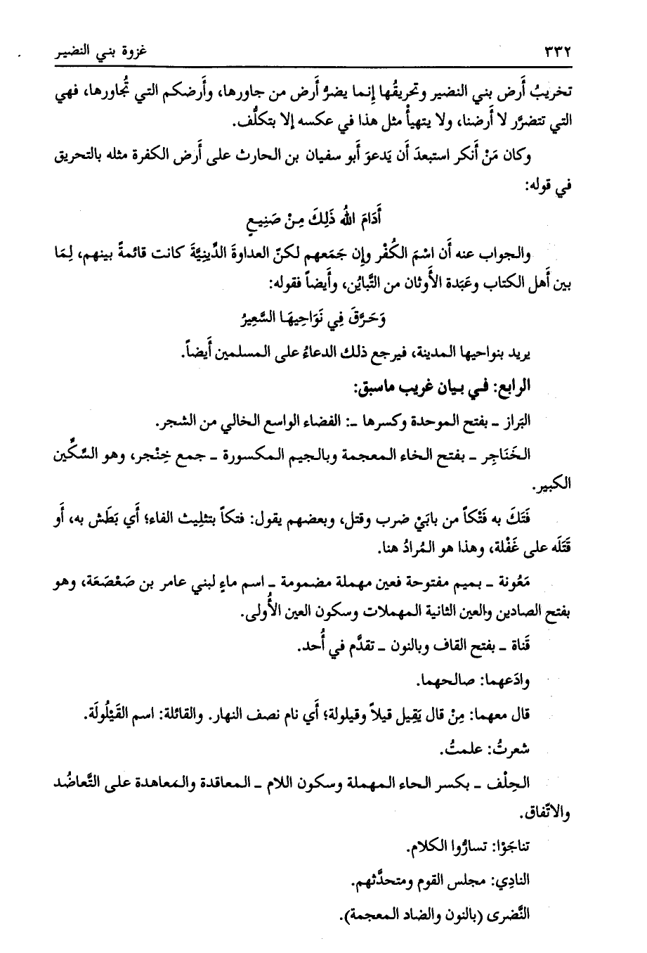 الرابع: في بيان غريب ما سبق: