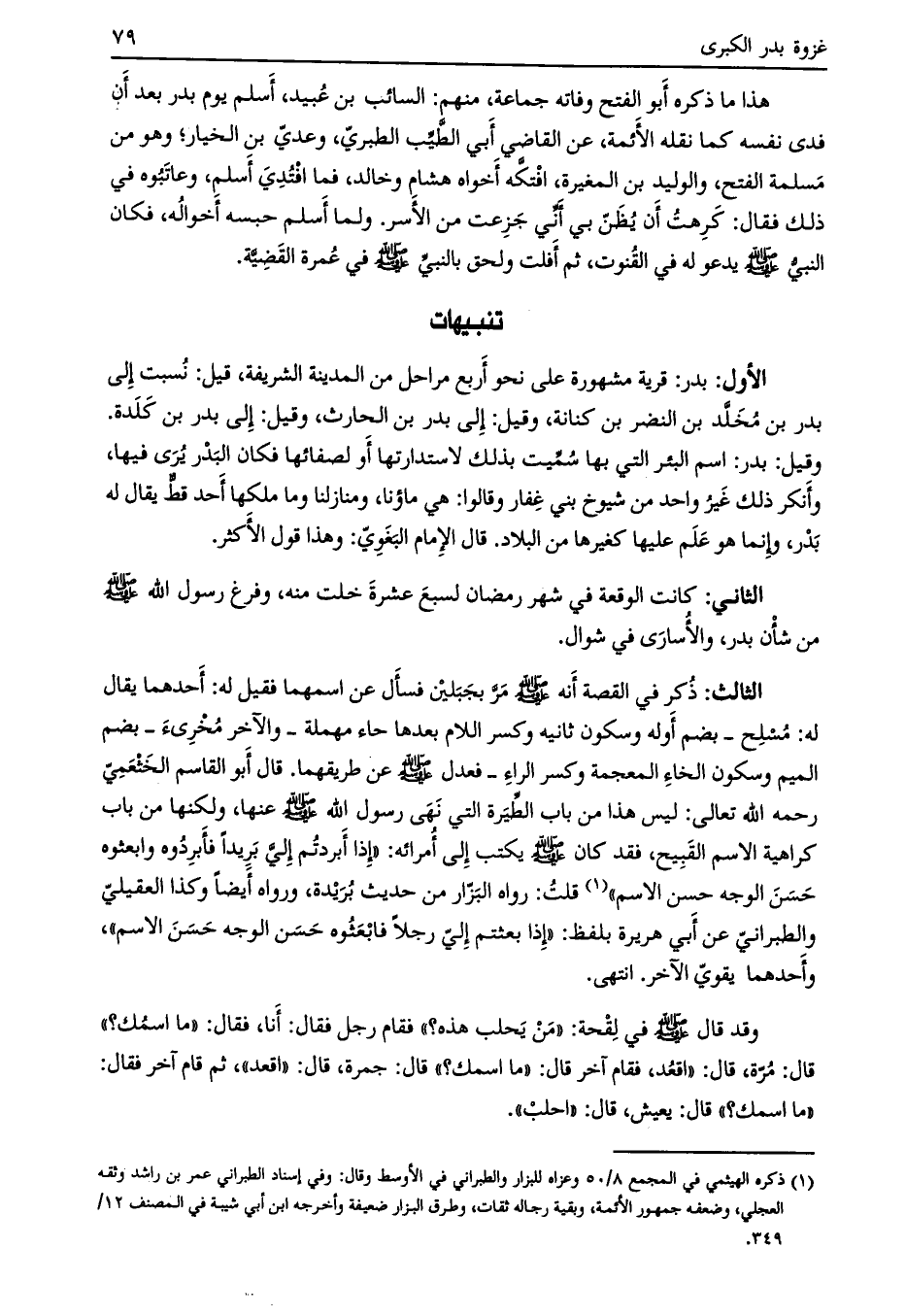 الأول: بدر: قرية مشهورة على نحو أربع مراحل من المدينة الشريفة، قيل: نسبت إلى بدر بن مخلّة بن النضر بن كنانة، وقيل: إلى بدر بن الحارث، وقيل: إلى بدر بن كلدة.