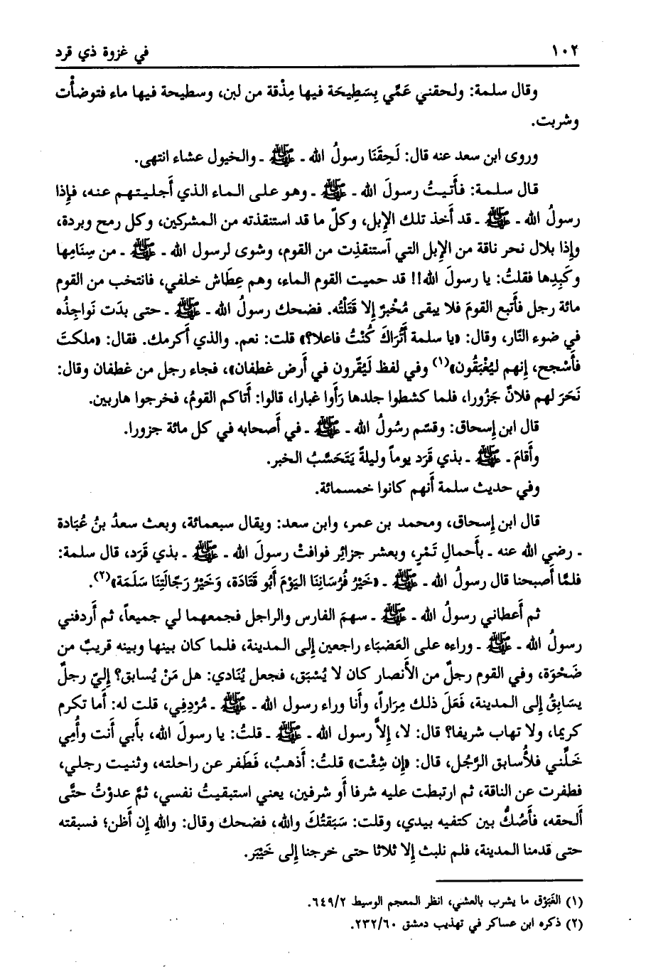 وقال سلمة: ولحقني عمّي بسطيحة فيها مذقة من لبن، وسطيحة فيها ماء فتوضأت وشربت.