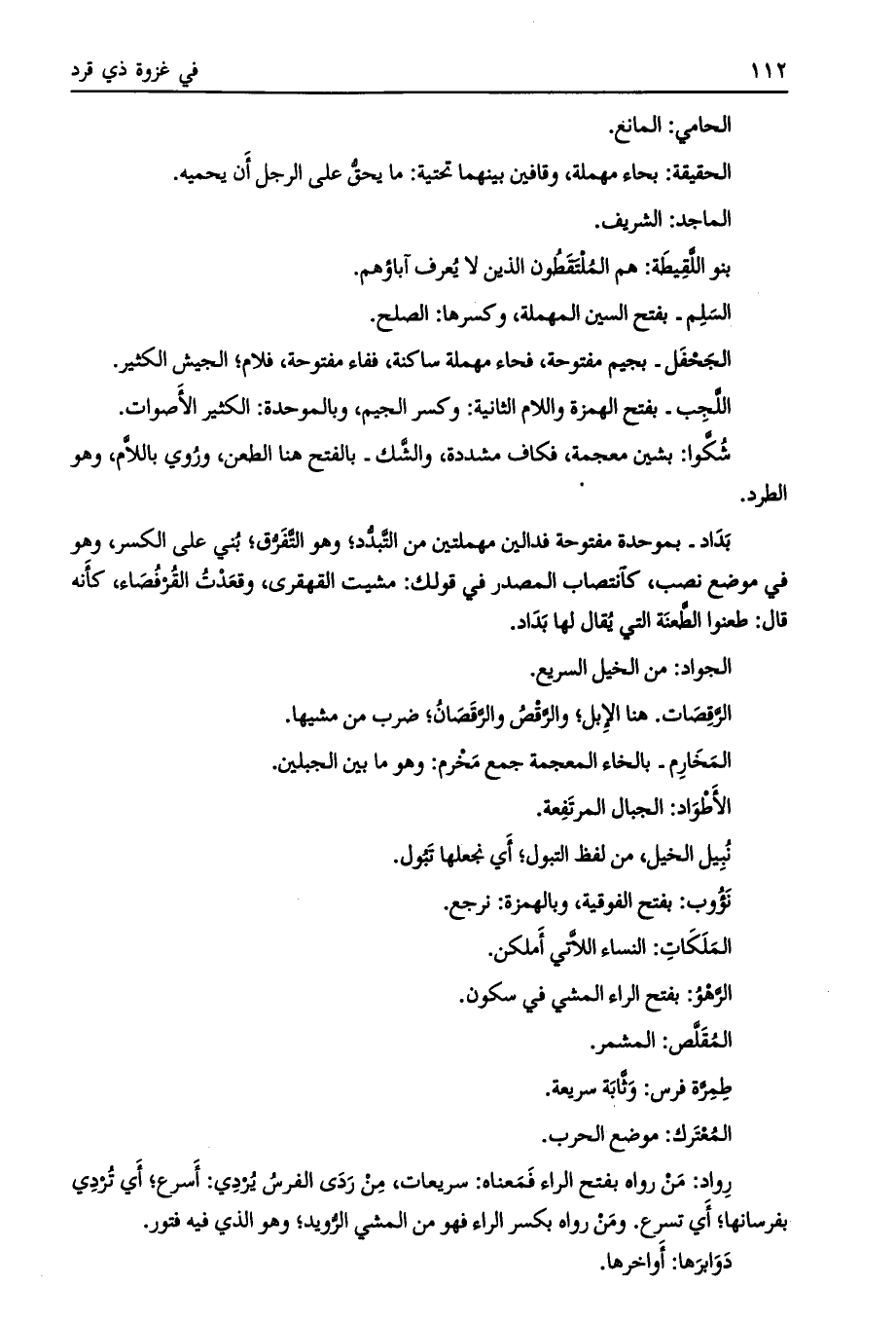 رواد: من رواه بفتح الراء فمعناه: سريعات، من ردى الفرس يردي: أسرع، أي تردي بفرسانها، أي تسرع. ومن رواه بكسر الراء فهو من المشي الرّويد، وهو الذي فيه فتور.