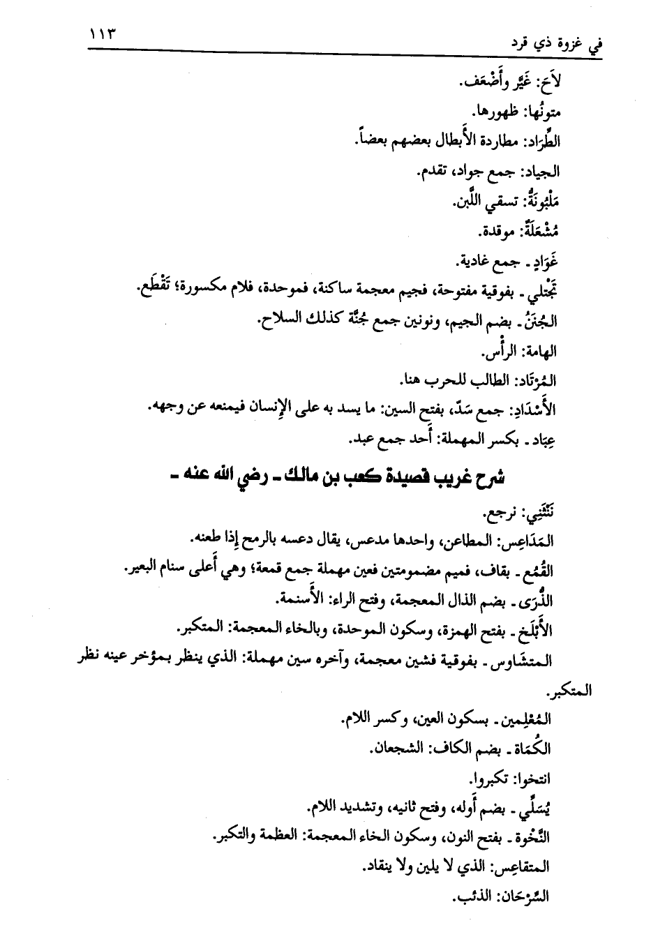 شرح غريب قصيدة كعب بن مالك- رضي الله عنه-