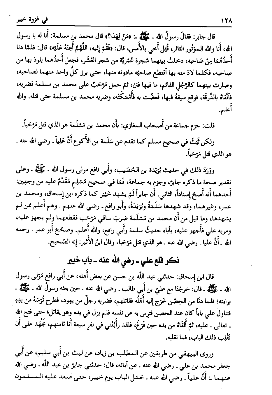 قلت: جزم جماعة من أصحاب المغازي: بأن محمد بن مسلمة هو الذي قتل مرحبا.
