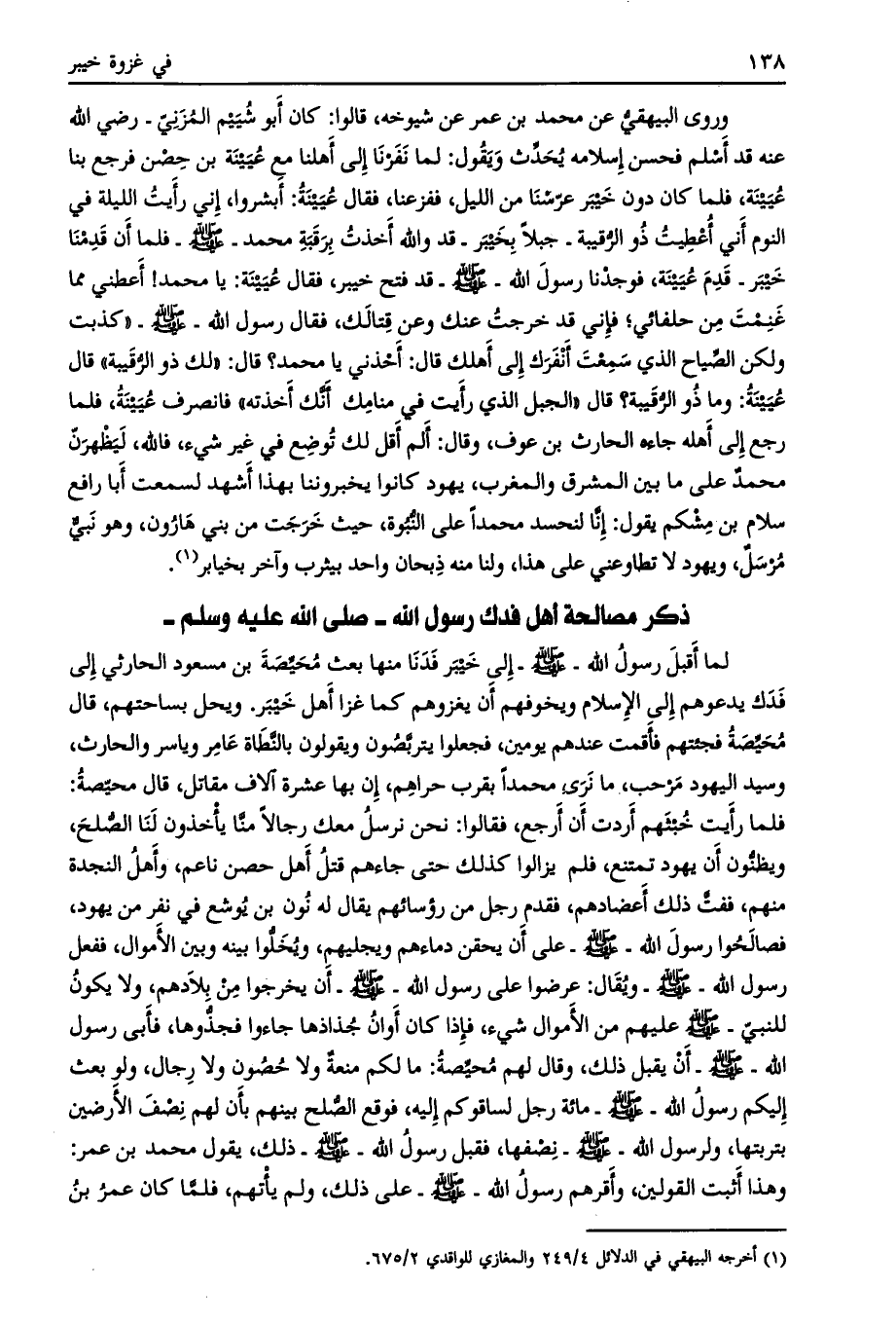 [ (1) ] أخرجه البيهقي في الدلائل 4/ 249 والمغازي للواقدي 2/ 675.