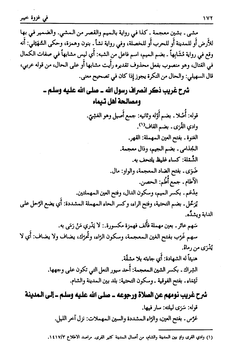 شرح غريب ذكر انصراف رسول الله- صلى الله عليه وسلم- ومصالحة أهل تيماء