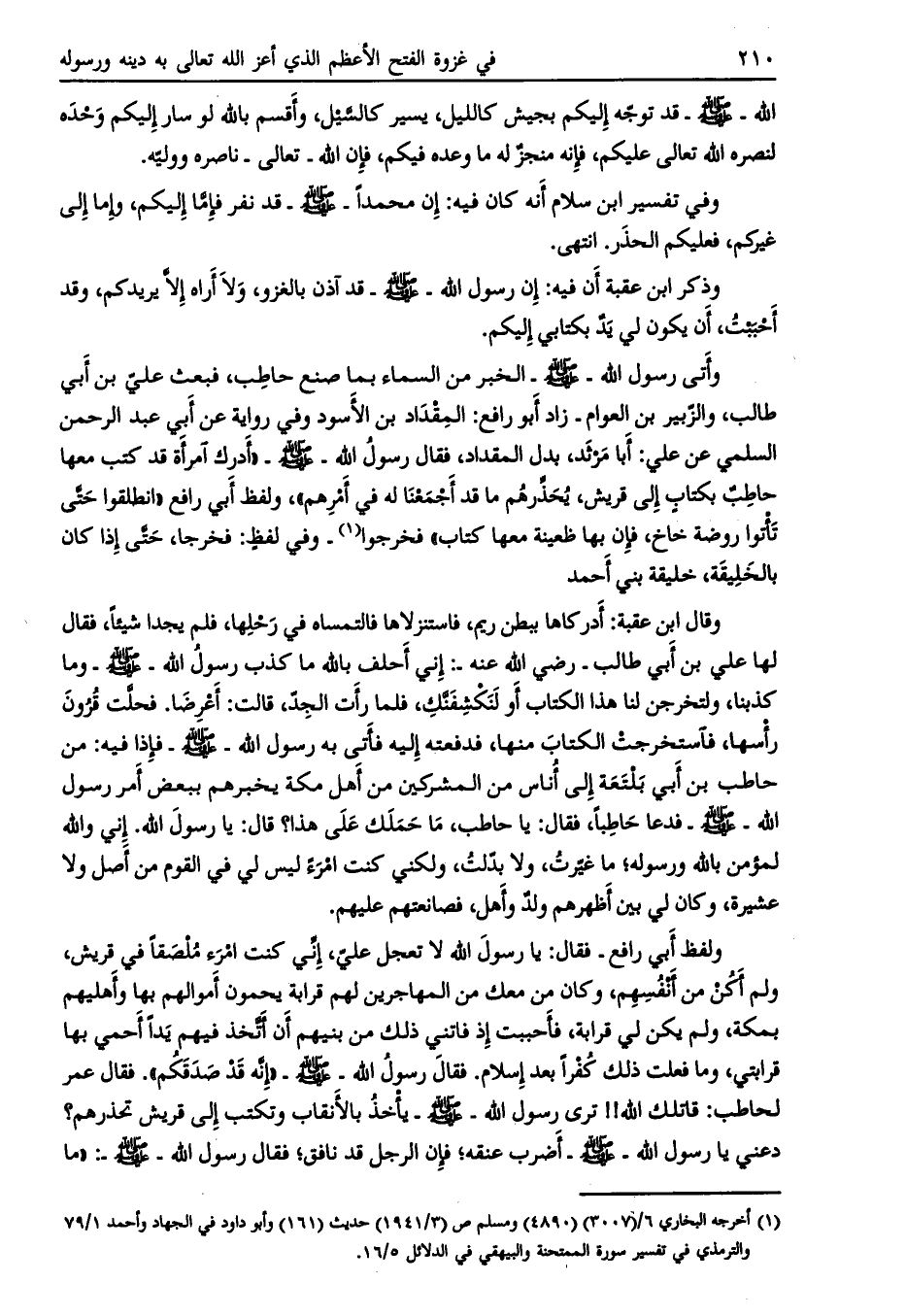 [ (1) ] أخرجه البخاري 6/ (3007) (4890) ومسلم ص (3/ 1941) حديث (161) وأبو داود في الجهاد وأحمد 1/ 79 والترمذي في تفسير سورة الممتحنة والبيهقي في الدلائل 5/ 16.