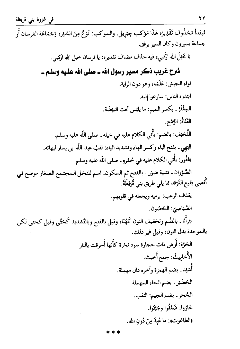 شرح غريب ذكر مسير رسول الله- صلى الله عليه وسلم-