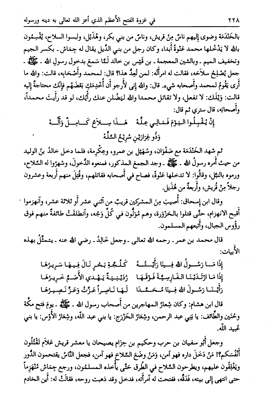 قال محمد بن عمر- رحمه الله تعالى- وجعل خالد- رضي الله عنه- يتمثّل بهذه الأبيات: