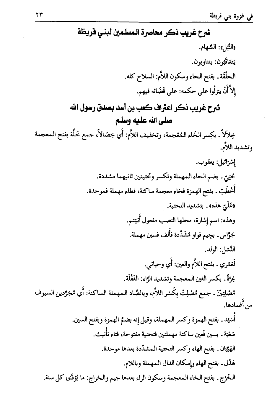 شرح غريب ذكر محاصرة المسلمين لبني قريظة