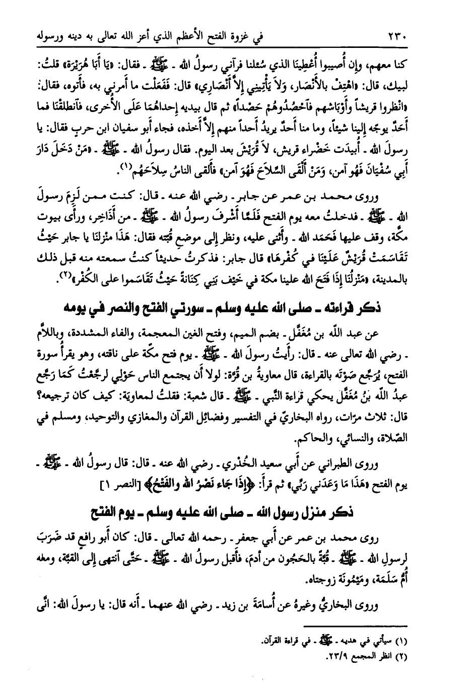 ذكر قراءته- صلى الله عليه وسلّم- سورتي الفتح والنصر في يومه