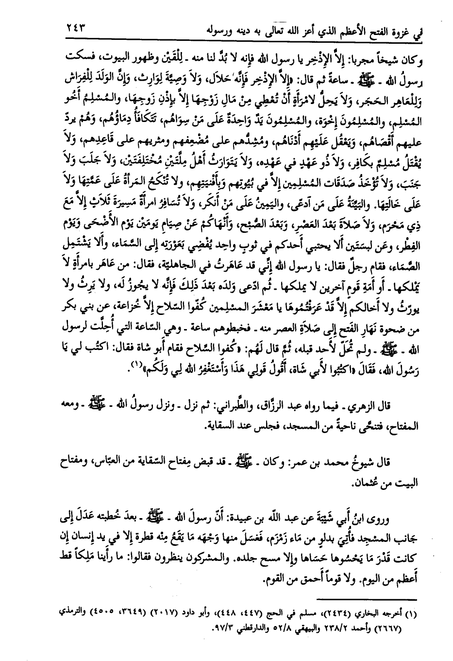 [ (1) ] أخرجه البخاري (2434) ، مسلم في الحج (447، 448) ، وأبو داود (2017) (3649، 4505) والترمذي (2667) وأحمد 2/ 238 والبيهقي 8/ 52 والدارقطني 973.