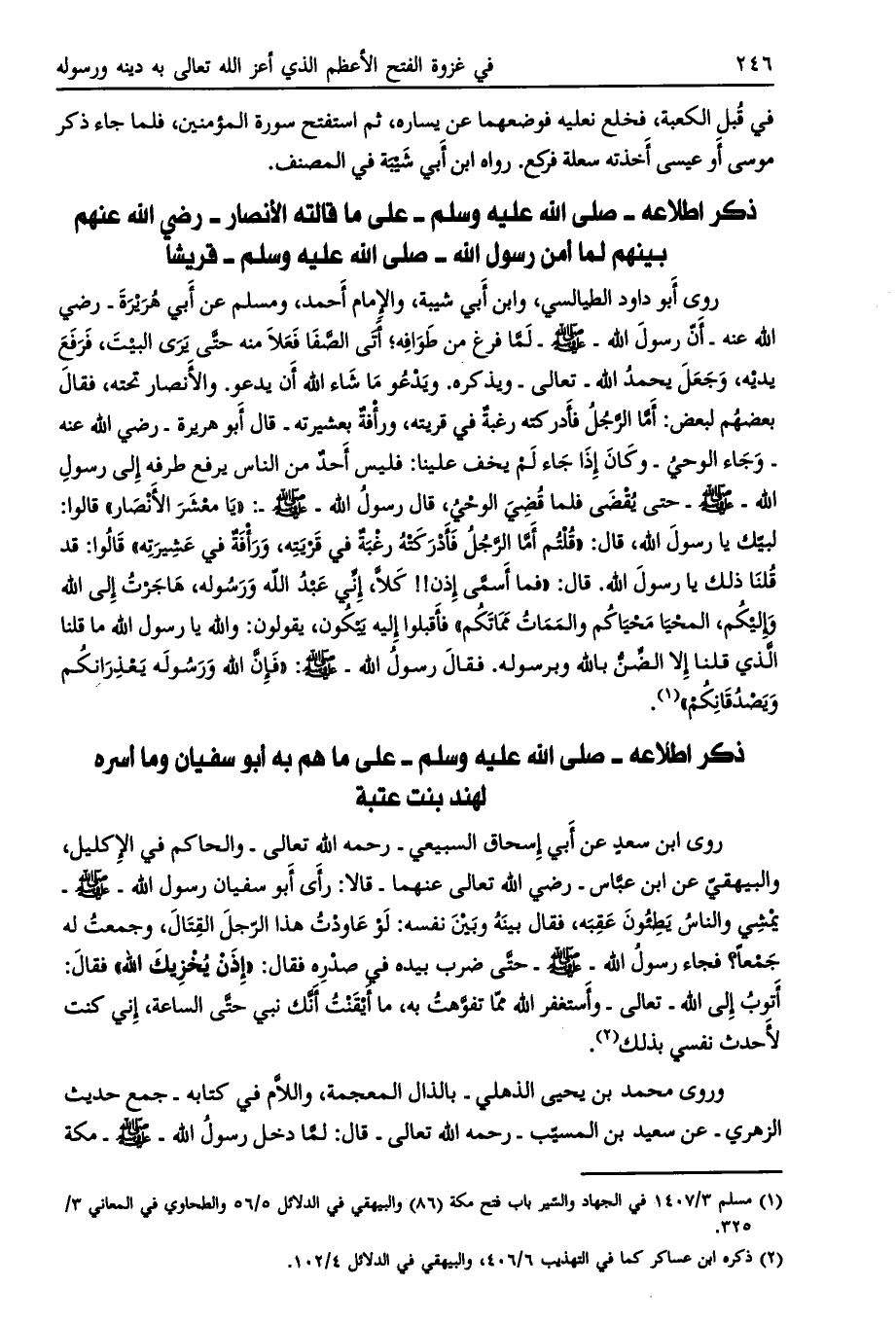 [ (1) ] مسلم 3/ 1407 في الجهاد والسّير باب فتح مكة (86) والبيهقي في الدلائل 5/ 56 والطحاوي في المعاني 3/ 325.