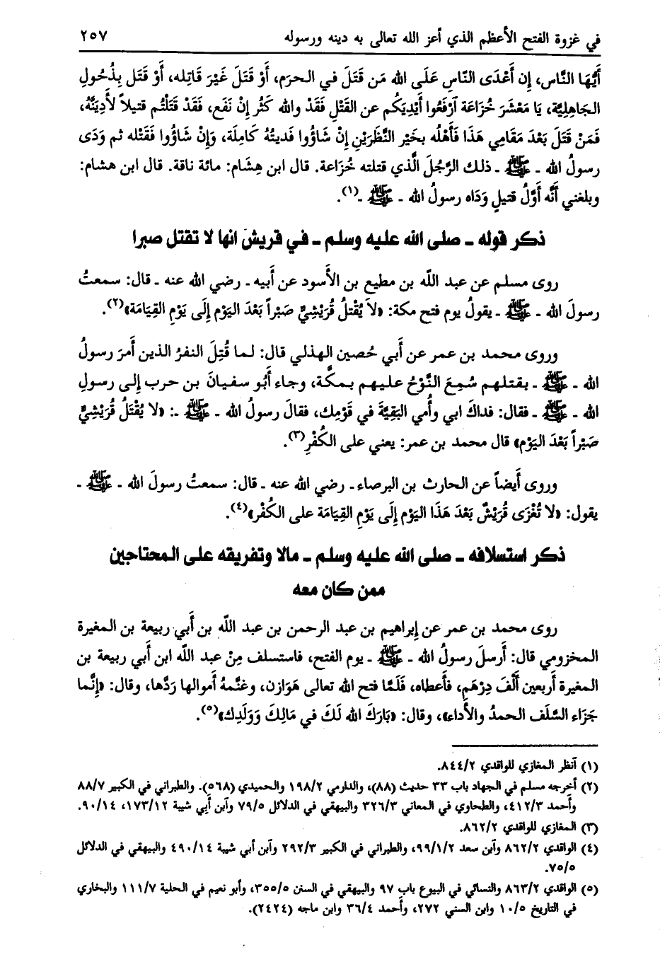 [ (5) ] الواقدي 2/ 863 والنسائي في البيوع باب 97 والبيهقي في السنن 5/ 355، وأبو نعيم في الحلية 7/ 111 والبخاري في التاريخ 5/ 10 وابن السني 272، وأحمد 4/ 36 وابن ماجة (2424) .