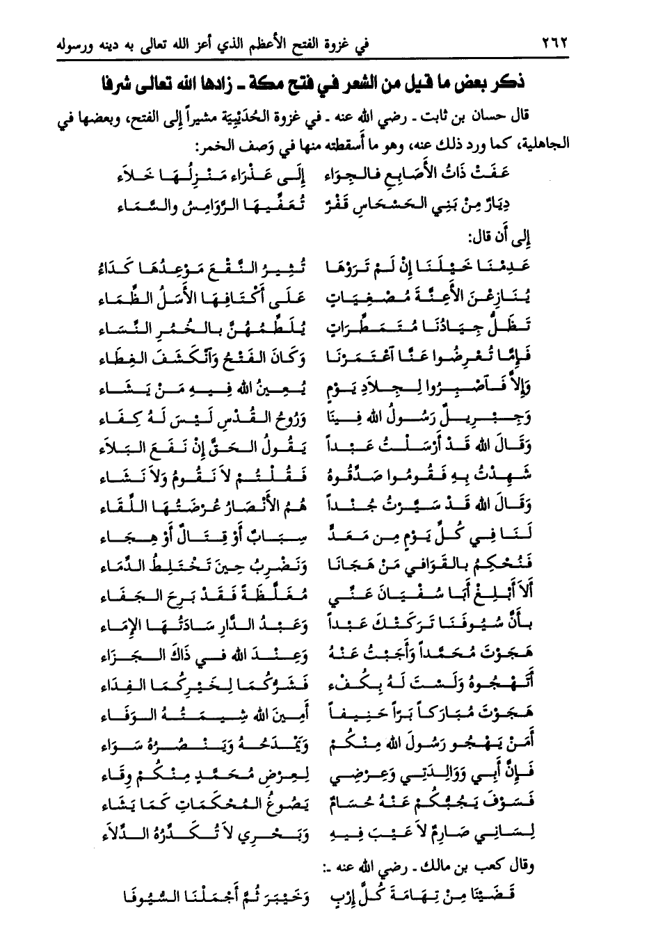 قال حسان بن ثابت- رضي الله عنه- في غزوة الحديبية مشيرا إلى الفتح، وبعضها في الجاهلية، كما ورد ذلك عنه، وهو ما أسقطته منها في وصف الخمر: