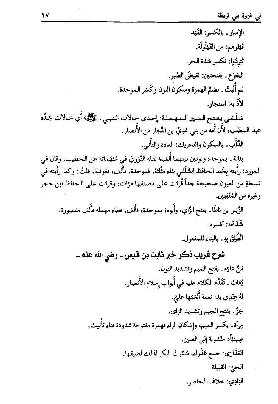 شرح غريب ذكر خبر ثابت بن قيس- رضي الله عنه-