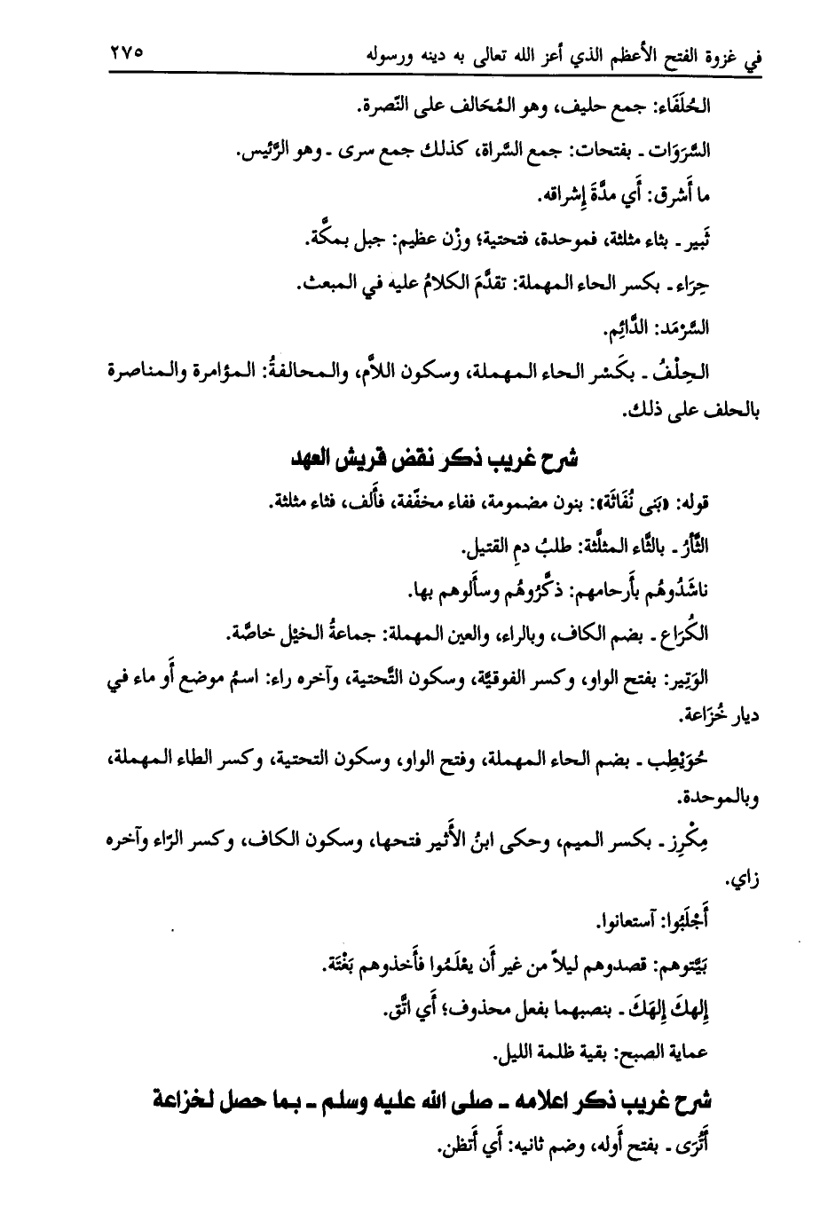 شرح غريب ذكر إعلامه- صلّى الله عليه وسلم- بما حصل لخزاعة