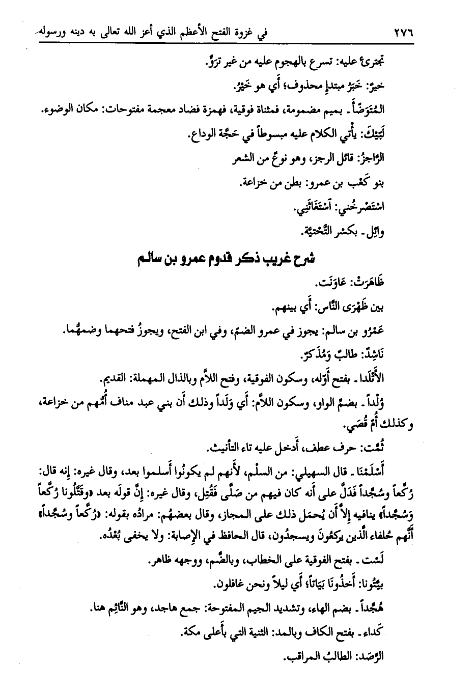 شرح غريب ذكر قدوم عمرو بن سالم