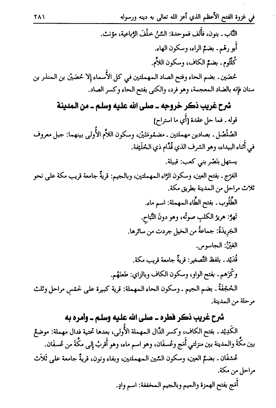 شرح غريب ذكر خروجه- صلى الله عليه وسلّم- من المدينة