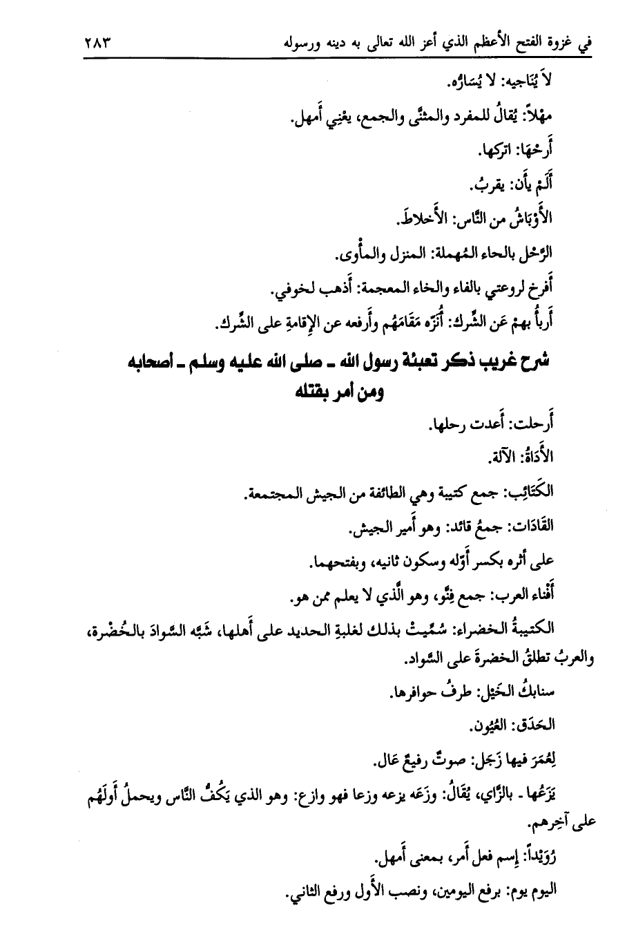 شرح غريب ذكر تعبئة رسول الله- صلى الله عليه وسلم- أصحابه ومن أمر بقتله