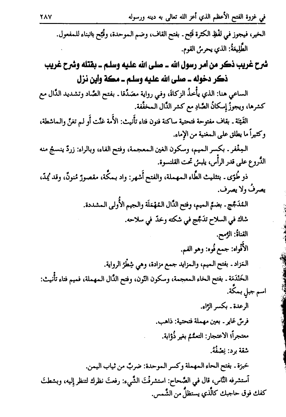 شرح غريب ذكر من أمر رسول الله- صلى الله عليه وسلّم- بقتله وشرح غريب ذكر دخوله- صلّى الله عليه وسلم- مكة وأين نزل