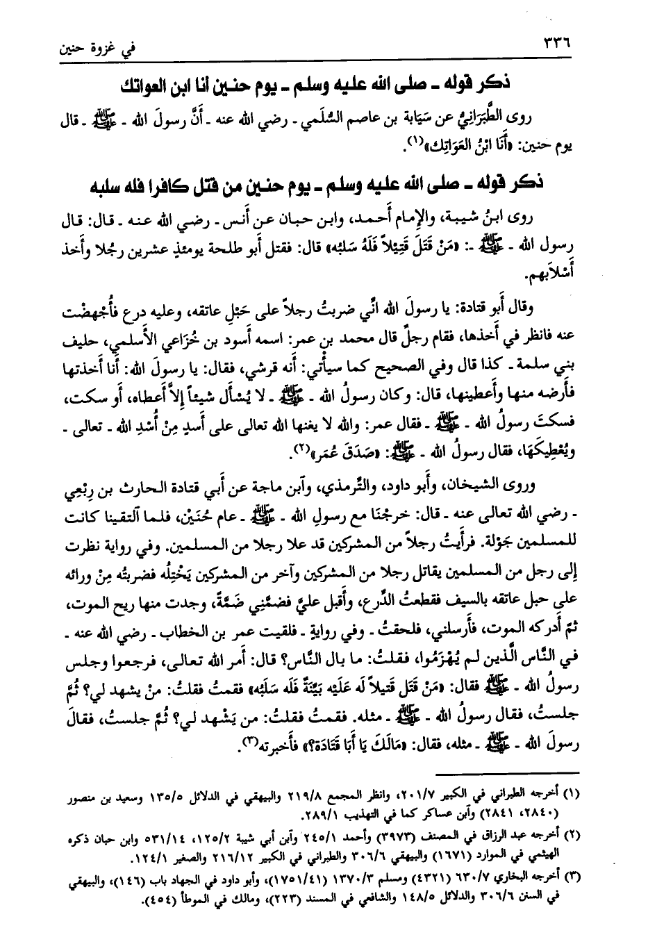 ذكر قوله- صلى الله عليه وسلم- يوم حنين من قتل كافرا فله سلبه