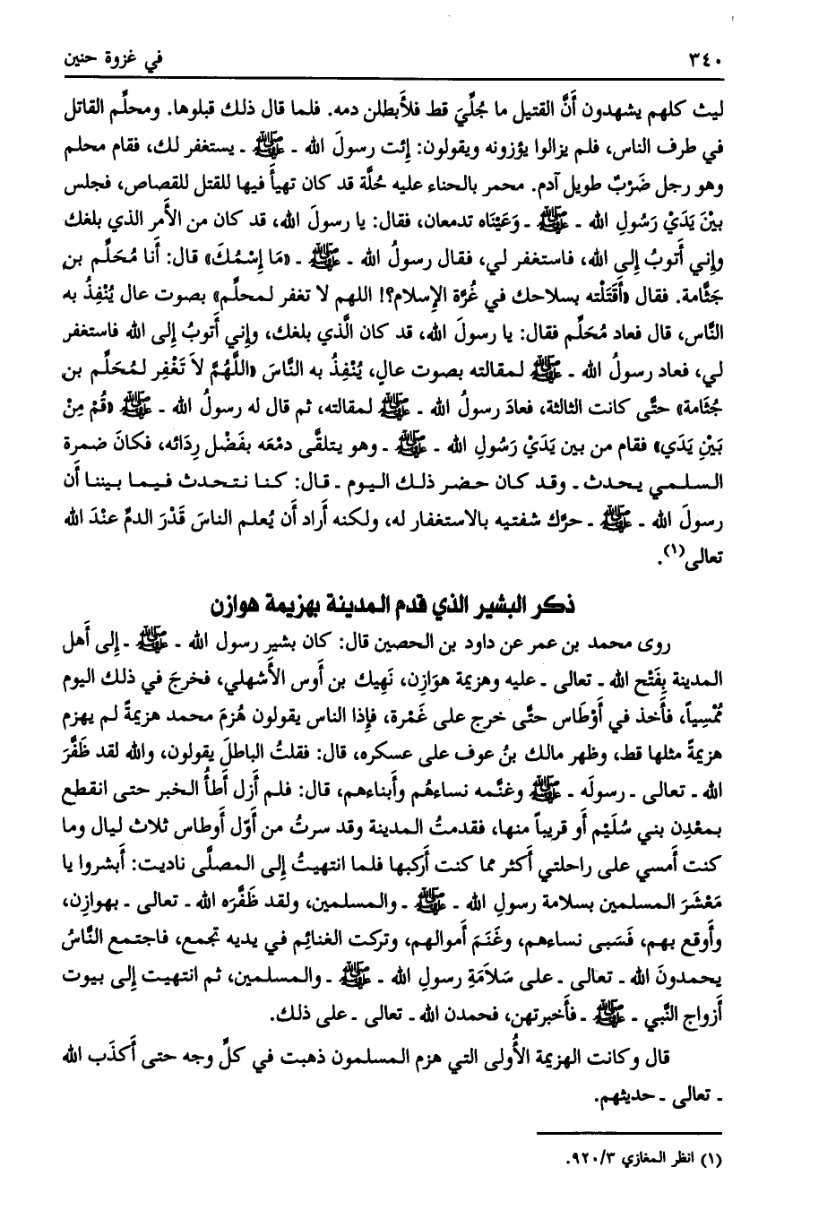 ذكر البشير الذي قدم المدينة بهزيمة هوازن