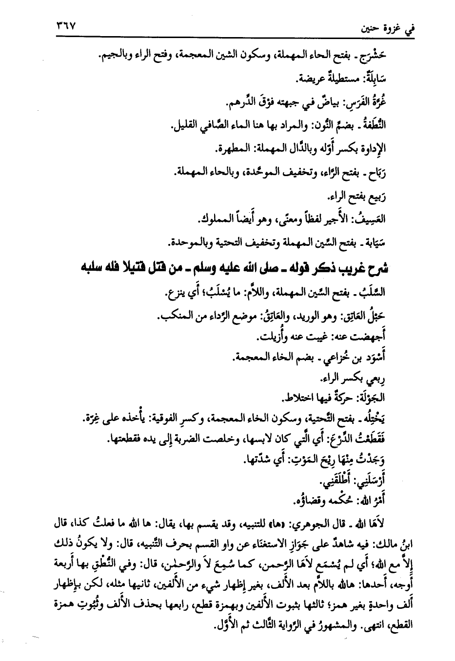 شرح غريب ذكر قوله- صلى الله عليه وسلم- من قتل قتيلا فله سلبه