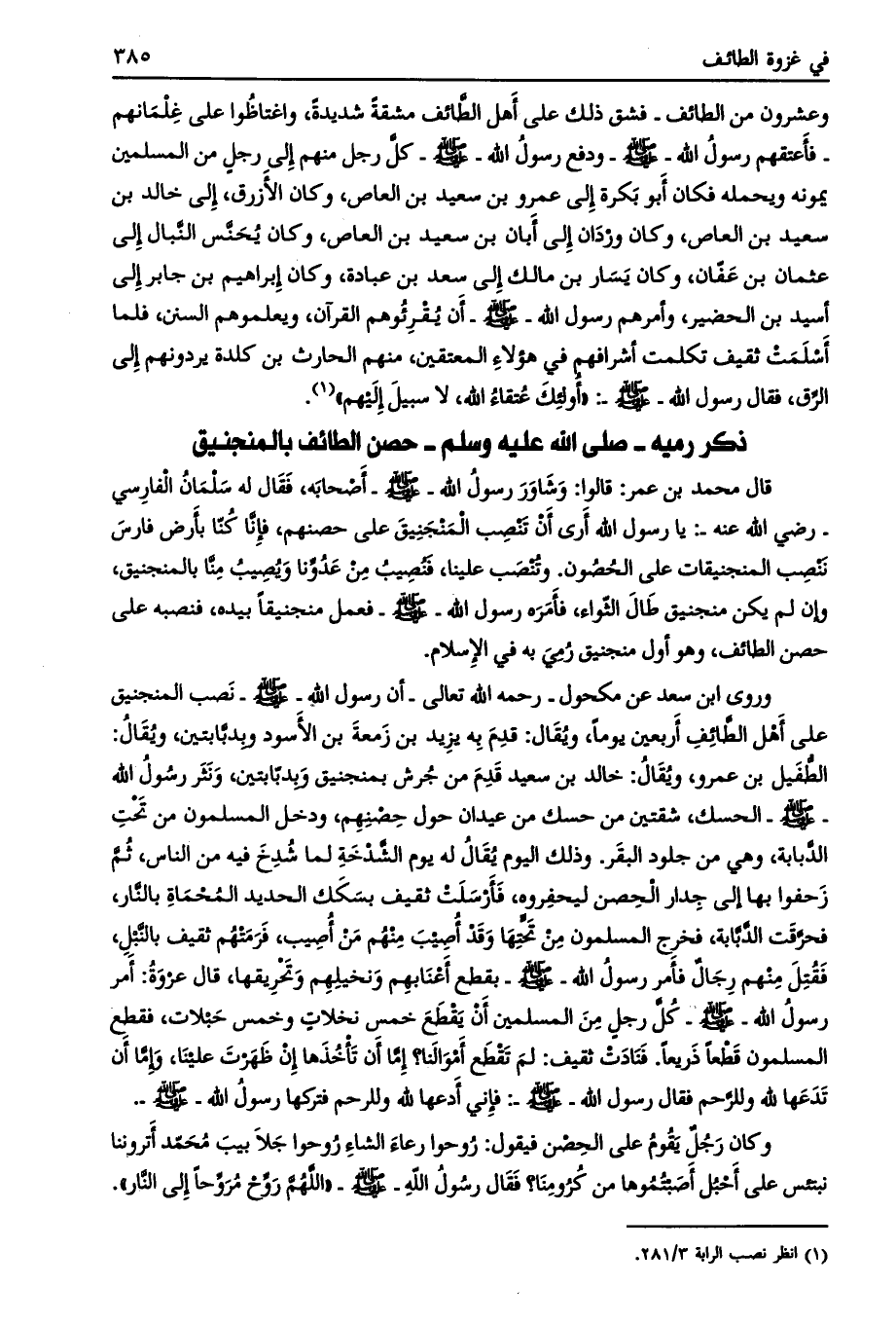 ذكر رميه- صلى الله عليه وسلّم- حصن الطائف بالمنجنيق