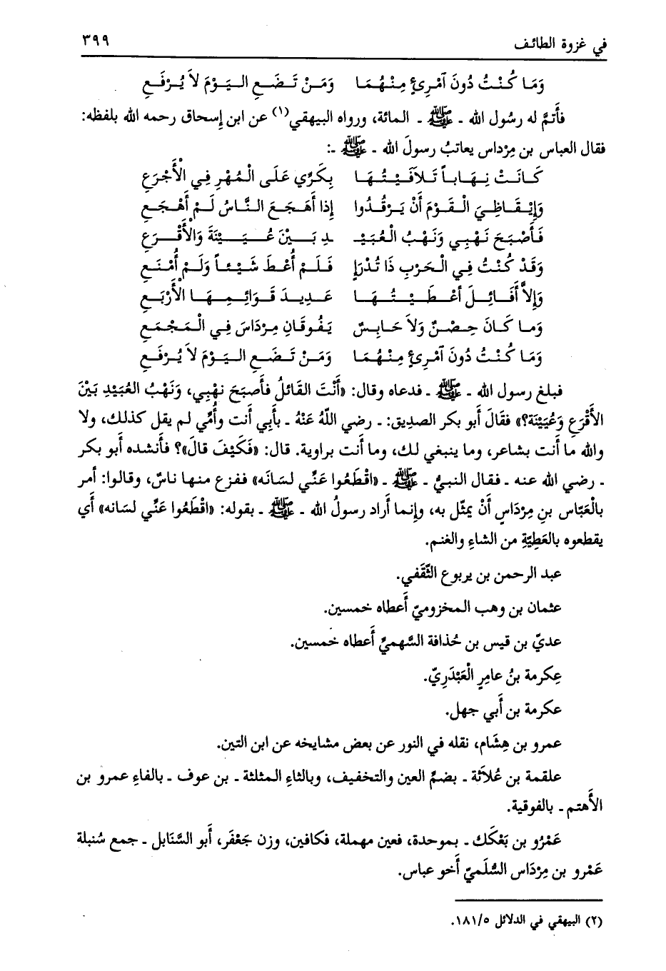 [ (1) ] البيهقي في الدلائل 5/ 181.