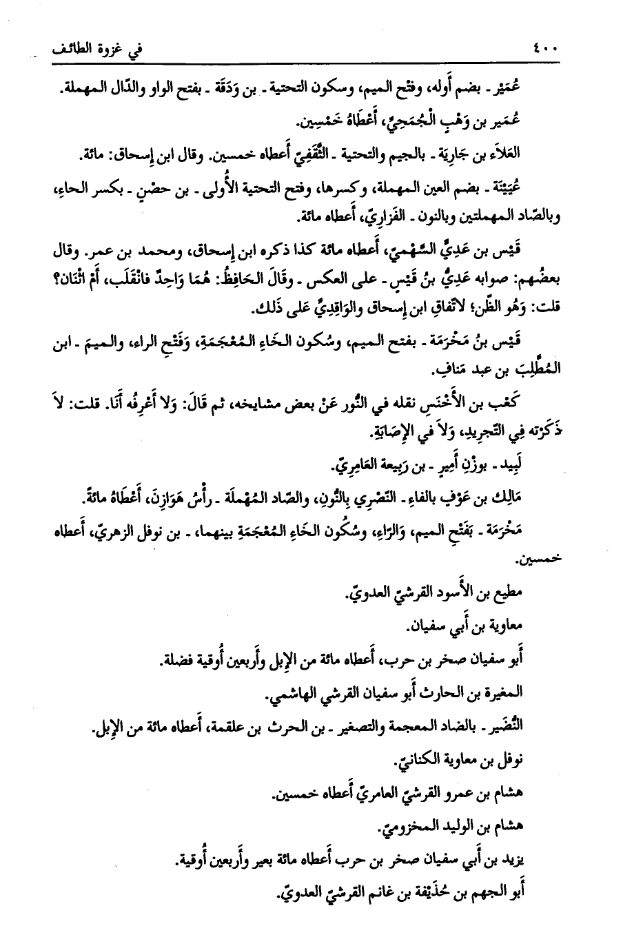 يزيد بن أبي سفيان صخر بن حرب أعطاه مائة بعير وأربعين أوقية.