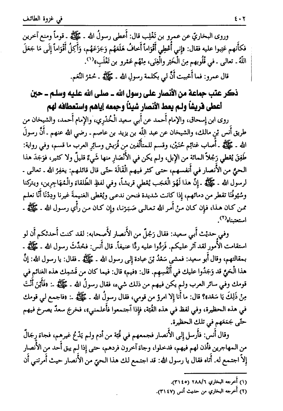 روى ابن إسحاق، والإمام أحمد عن أبي سعيد الخدري، والإمام أحمد، والشيخان من طريق أنس بن مالك، والشيخان عن عبد الله بن يزيد بن عاصم- رضي الله عنهم- أن رسول الله- صلى الله عليه وسلّم- أصاب غنائم حنين، وقسم للمتألّفين من قريش وسائر العرب ما قسم، وفي رواية: