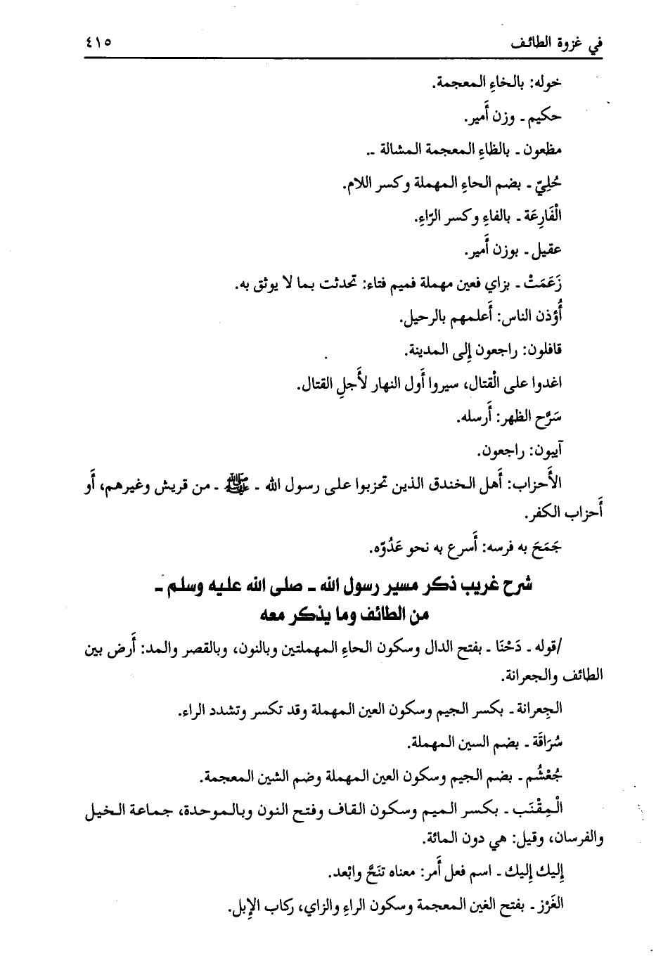 شرح غريب ذكر مسير رسول الله- صلى الله عليه وسلم- من الطائف وما يذكر معه