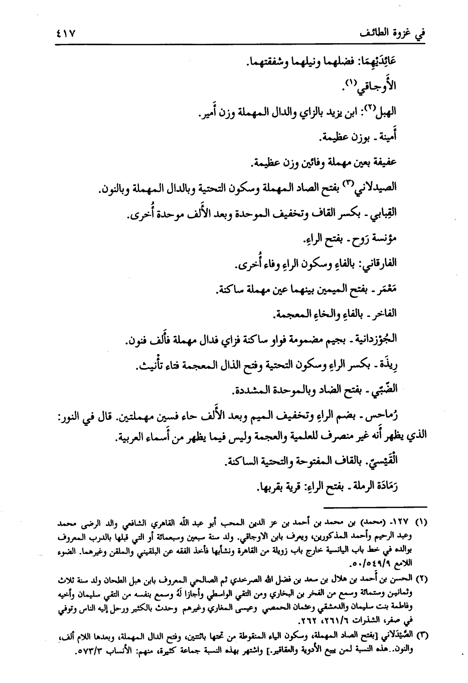 [ (3) ] الصّيدلاني [بفتح الصاد المهملة، وسكون الياء المنقوطة من تحتها باثنتين، وفتح الدال المهملة، وبعدها اللام ألف، والنون.. هذه النسبة لمن يبيع الأدوية والعقاقير.] واشتهر بهذه النسبة جماعة كثيرة، منهم: الأنساب 3/ 573.