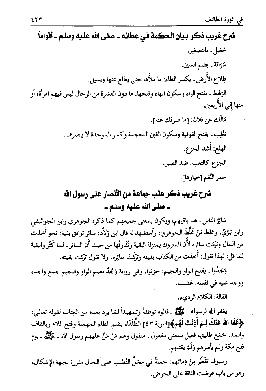 شرح غريب ذكر عتب جماعة من الأنصار على رسول الله- صلى الله عليه وسلّم-