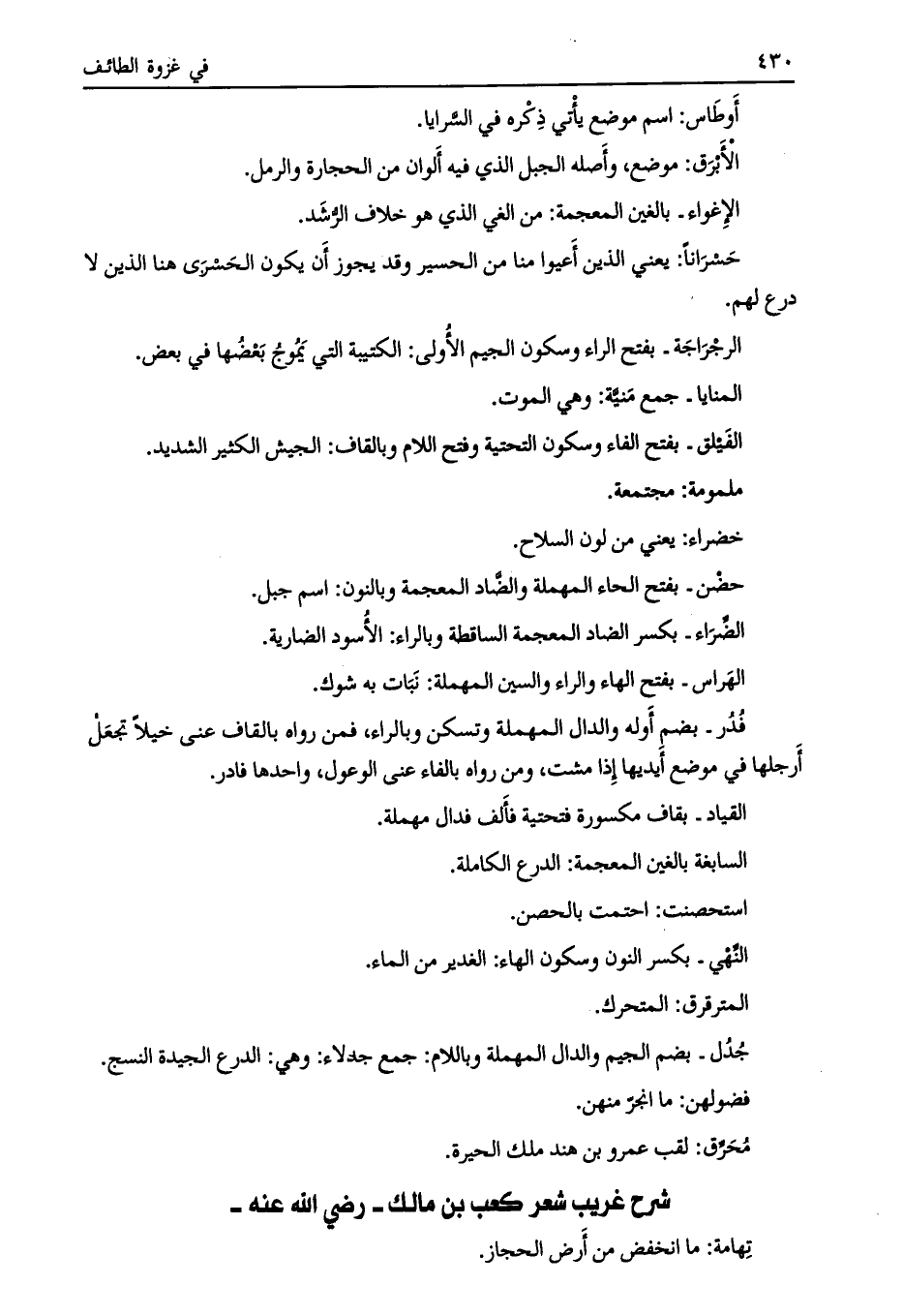 شرح غريب شعر كعب بن مالك- رضي الله عنه-