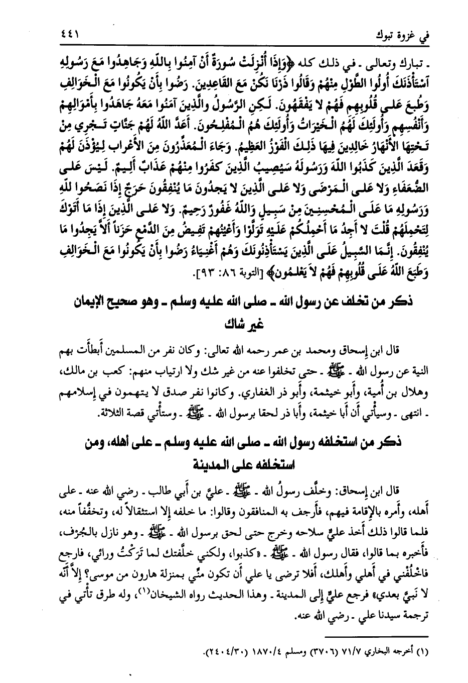 ذكر من تخلف عن رسول الله- صلى الله عليه وسلّم- وهو صحيح الإيمان غير شاك