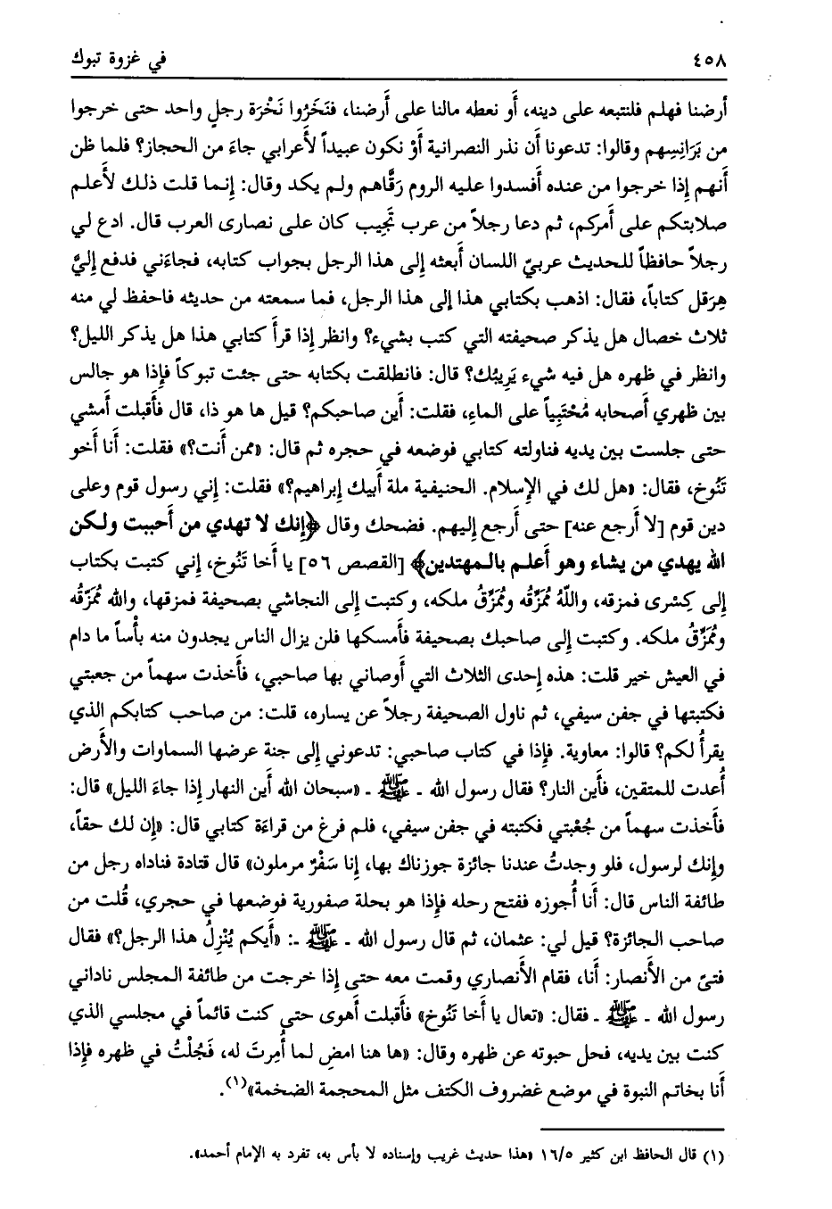 [ (1) ] قال الحافظ ابن كثير 5/ 16 «هذا حديث غريب وإسناده لا بأس به، تفرد به الإمام أحمد» .