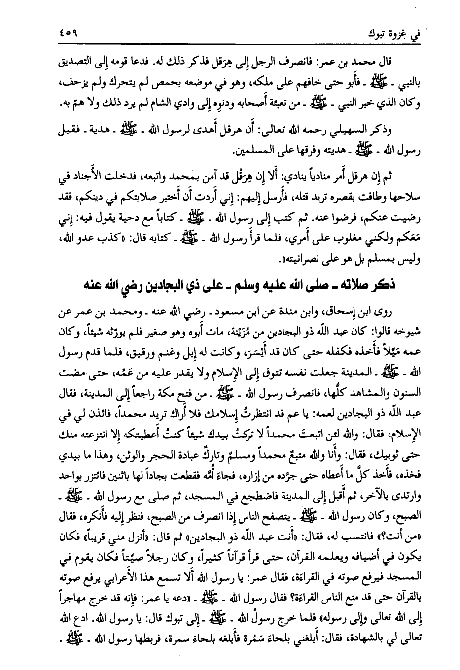 ذكر صلاته- صلّى الله عليه وسلم- علي ذي البجادين رضي الله عنه
