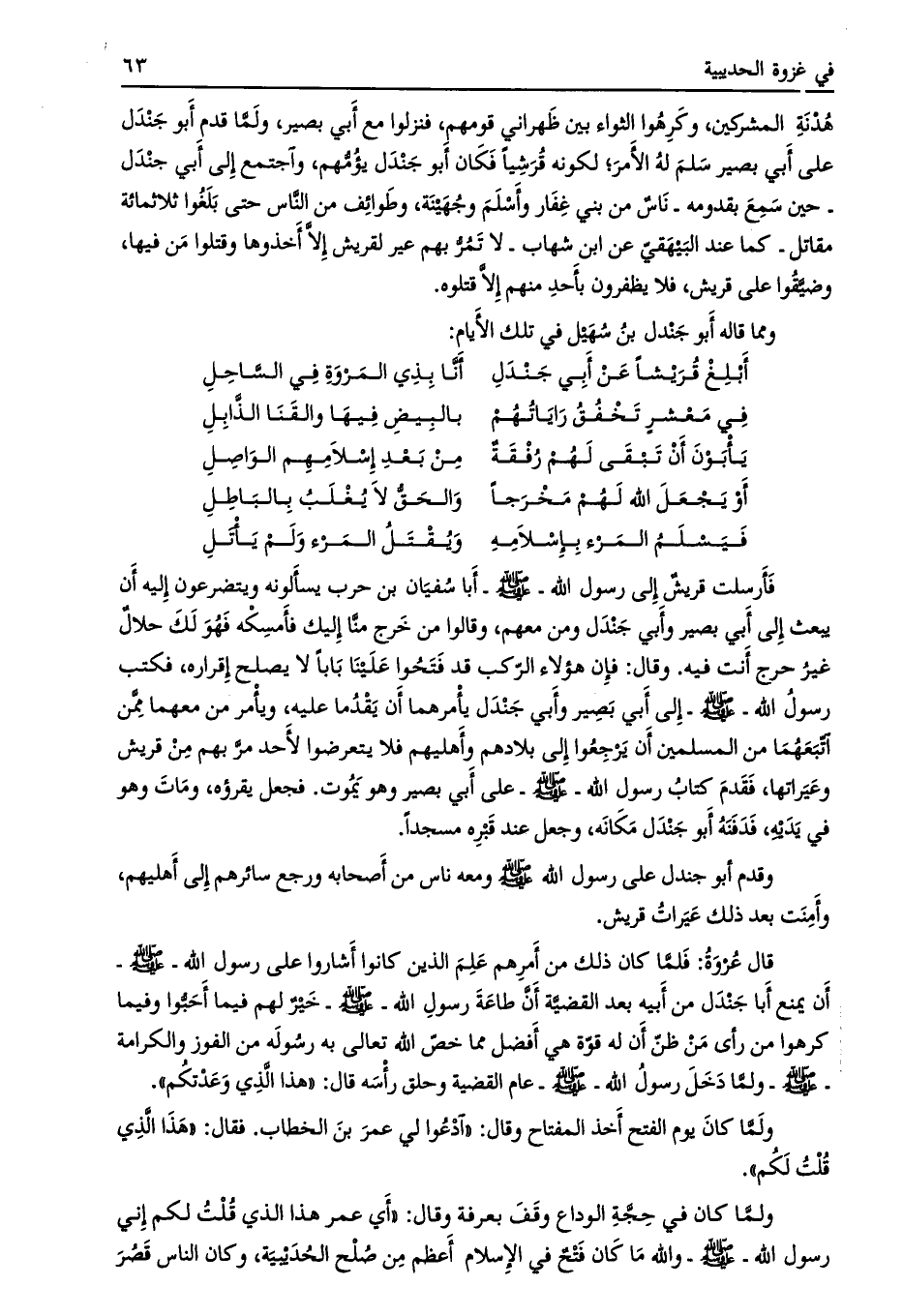 قال عروة: فلمّا كان ذلك من أمرهم علم الذين كانوا أشاروا على رسول الله- صلى الله عليه وسلّم- أن يمنع أبا جندل من أبيه بعد القضيّة أنّ طاعة رسول الله- صلى الله عليه وسلم- خير لهم فيما أحبّوا وفيما كرهوا من رأى من ظن أن له قوّة هي أفضل مما خص الله تعالى به رسوله من الفوز والكرامة- صلى الله عليه وسلّم-