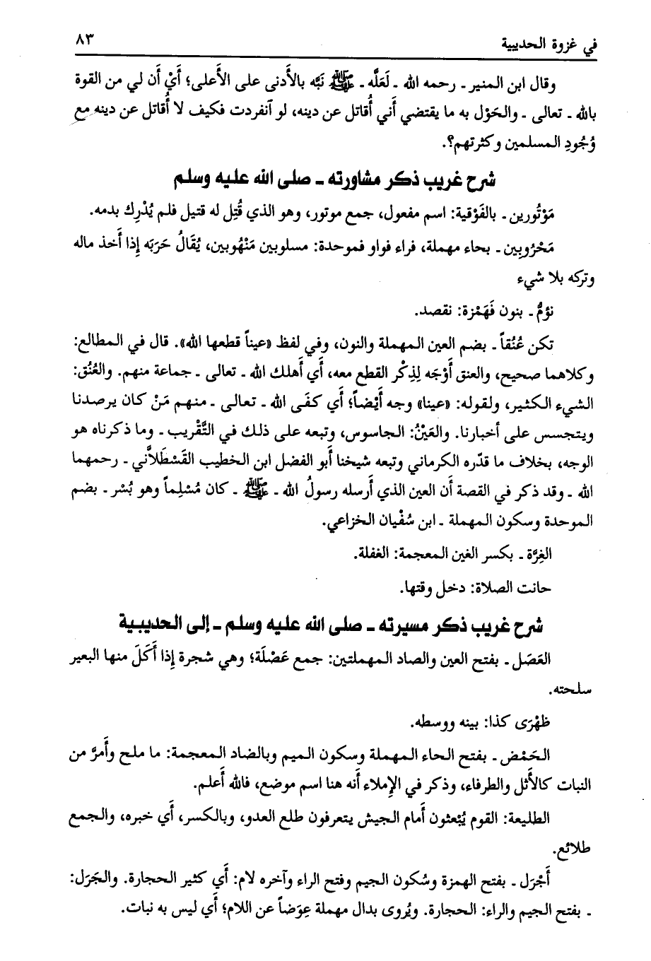شرح غريب ذكر مسيرته- صلى الله عليه وسلّم- إلى الحديبية