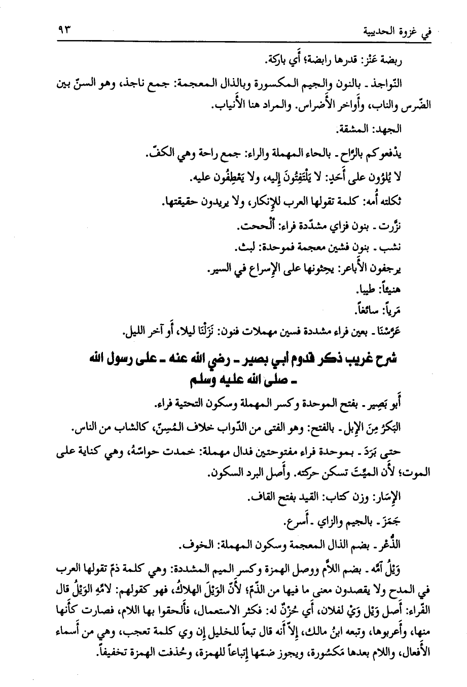 شرح غريب ذكر قدوم أبي بصير- رضي الله عنه- على رسول الله- صلى الله عليه وسلّم