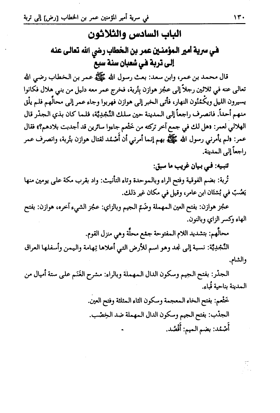 الباب السادس والثلاثون في سرية أمير المؤمنين عمر بن الخطاب رضي الله تعالى عنه إلى تربة في شعبان سنة سبع