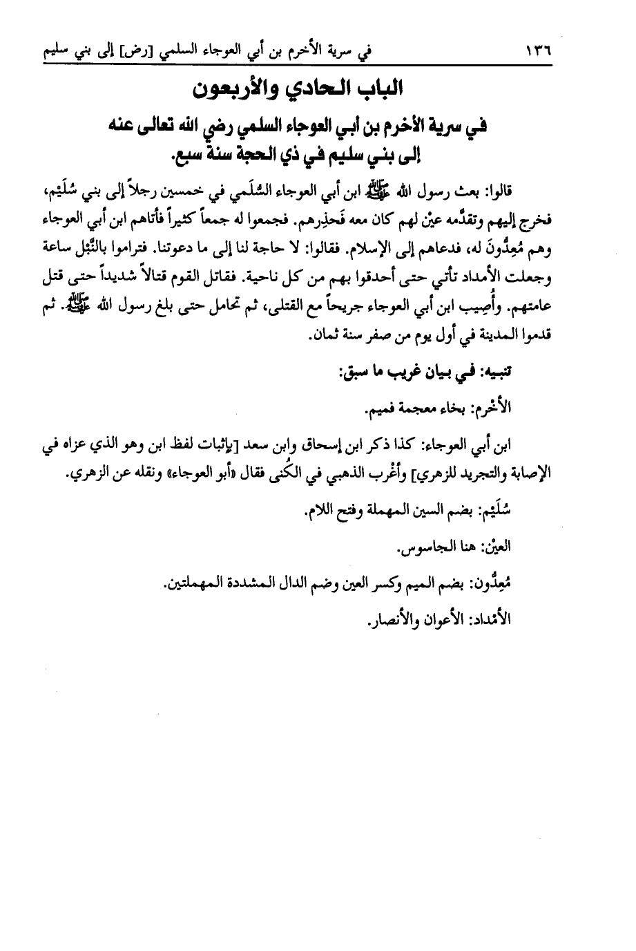 الباب الحادي والأربعون في سرية الأخرم بن أبي العوجاء السّلمي رضي اللَّه تعالى عنه إلى بني سليم في ذي الحجة سنة سبع.
