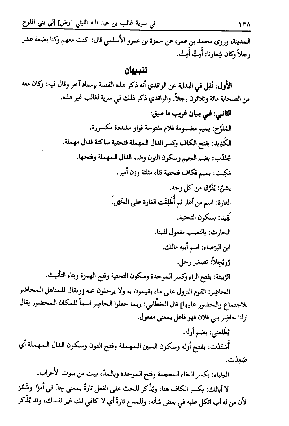 الأول: نقل في البداية عن الواقدي أنه ذكر هذه القصة بإسناد آخر وقال فيه: وكان معه من الصحابة مائة وثلاثون رجلا. والواقدي ذكر ذلك في سرية لغالب غير هذه.