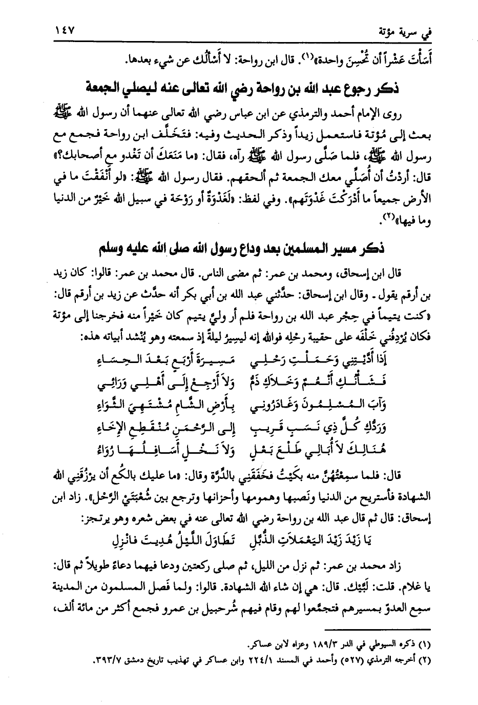 ذكر رجوع عبد الله بن رواحة رضي الله عنه ليصلي الجمعة