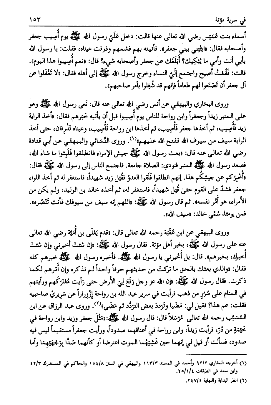 [ (1) ] أخرجه البخاري 2/ 92 وأحمد في المسند 3/ 113 والبيهقي في السنن 8/ 154 والحاكم في المستدرك 3/ 42 وابن سعد في الطبقات 4/ 1/ 25.
