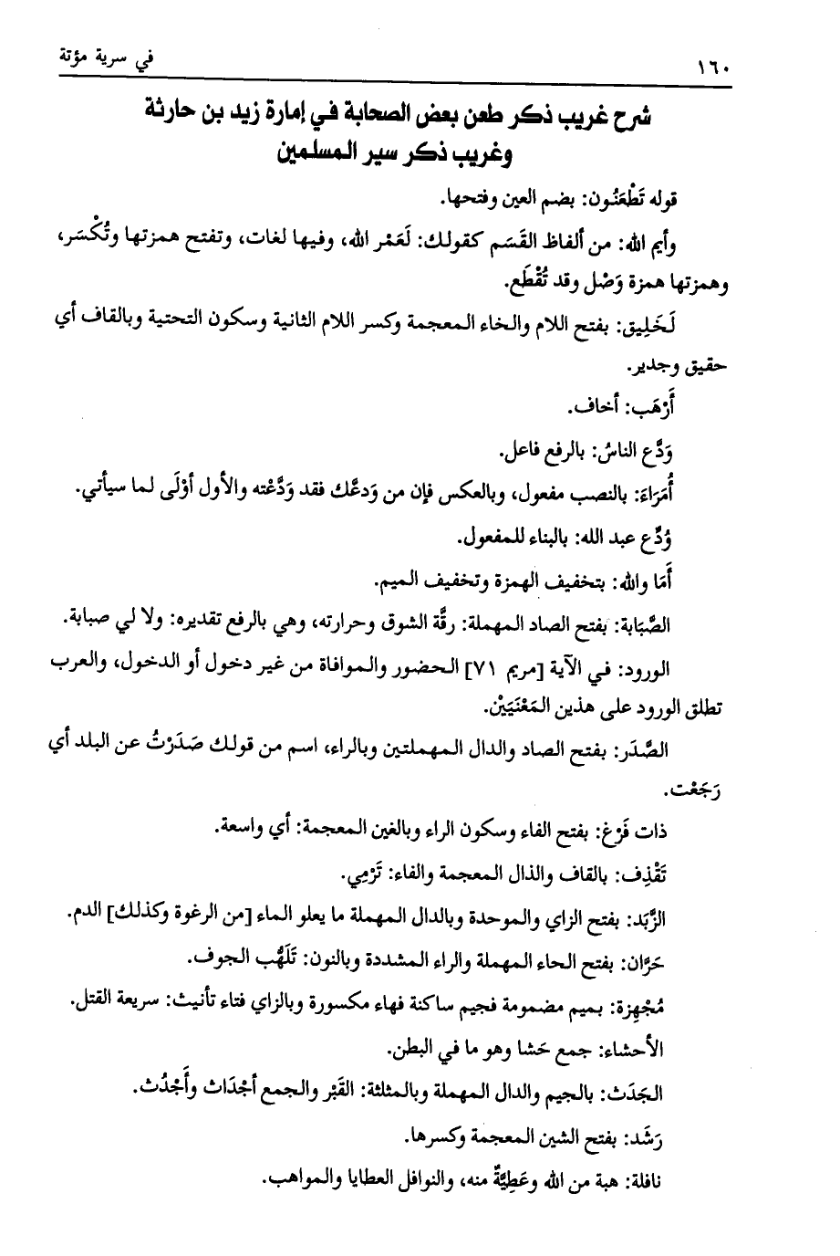 شرح غريب ذكر طعن بعض أصحابه في إمارة زيد بن حارثة وغريب ذكر سير المسلمين