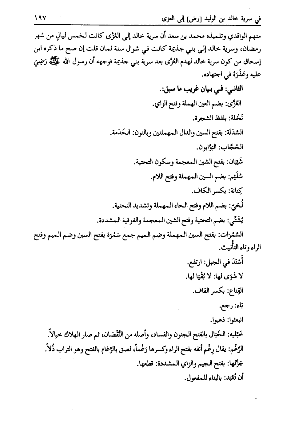 منهم الواقدي وتلميذه محمد بن سعد أن سرية خالد إلى العزّى كانت لخمس ليال من شهر رمضان، وسرية خالد إلى بني جذيمة كانت في شوال سنة ثمان قلت إن صح ما ذكره ابن إسحاق من كون سرية خالد لهدم العزّى بعد سرية بني جذيمة فوجهه أن رسول الله صلى الله عليه وسلم رضي عليه وعذره في اجتهاده.