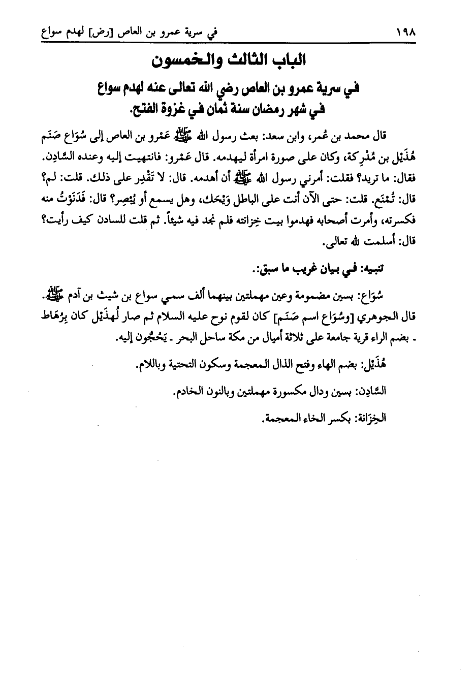 الباب الثالث والخمسون في سرية عمرو بن العاص رضي اللَّه تعالى عنه لهدم سواع في شهر رمضان سنة ثمان في غزوة الفتح.