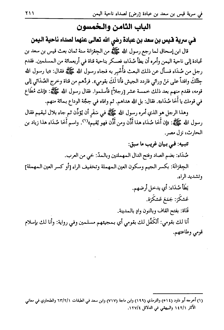الباب الثامن والخمسون في سرية قيس بن سعد بن عبادة رضي اللَّه تعالى عنهما لصداء ناحية اليمن