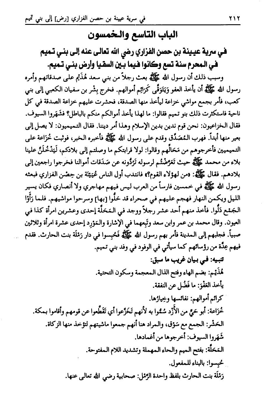 الباب التاسع والخمسون في سرية عيينة بن حصن الفزاري رضي اللَّه تعالى عنه إلى بني تميم في المحرم سنة تسع وكانوا فيما بين السقيا وأرض بني تميم.